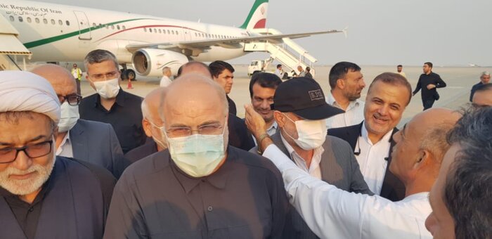 به گزارش خبرنگار ایرنا، رئیس مجلس شورای اسلامی در فرودگاه عسلویه مورد استقبال رسمی احمد محمدی زاده استاندار ، نمایندگان و مسوولان استان بوشهر قرار گرفت.
