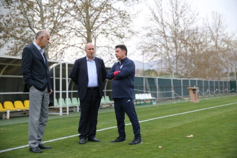 * سپس اعضای کادر فنی و بازیکنان در زمین چمن کمپ تیم ملی حاضر شدند.